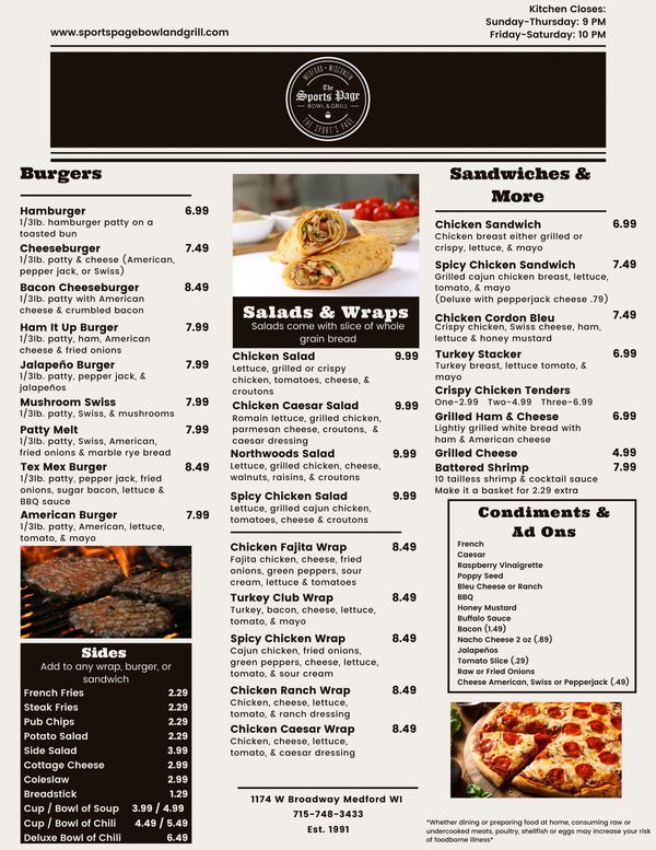 Online Menu Of Sportspage Bowl Grill Lounge Restaurant Polson Montana 59860 Zmenu